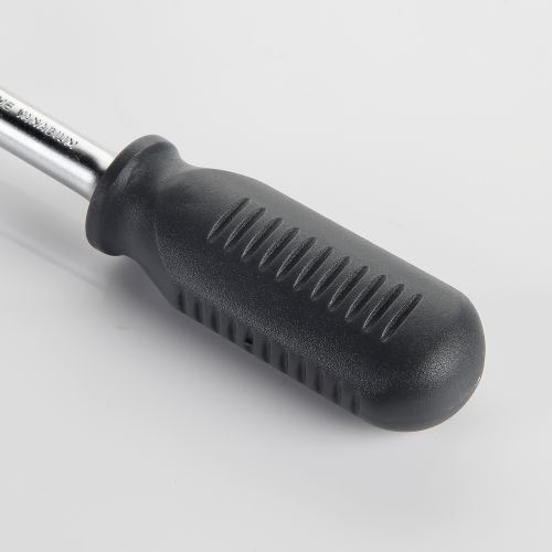Mango ergónomico de goma antideslizante que facilita el agarre, el confort y que la transmisión de la fuerza a los tornillos sea óptima.