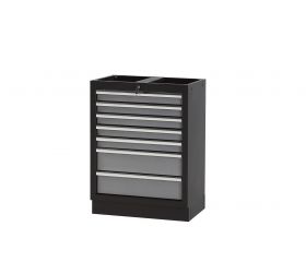 Armario base de 7 cajones con base de acero inoxidable y cerradura común y 2 llaves, de estructura de Acero de 1 mm y chapa de 0,8 mm.