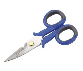 Tijera fabricada en Acero inoxidable con filo serrado y muesca pelacables de 145 mm. de longitud Alyco
